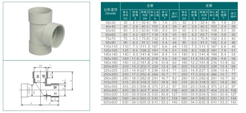 1、按照管件口徑分一般有等徑三通,異徑三通等。